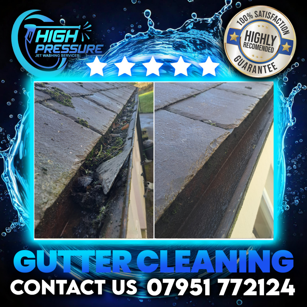 At High Pressure Jet Wash Services, we provide thorough and safe gutter clearing and cleaning for homes and businesses in Knottingley and surrounding areas. We remove moss, leaves, twigs, and any other blockages from your gutters and downpipes — and clean the external surfaces to leave them looking smart and tidy.