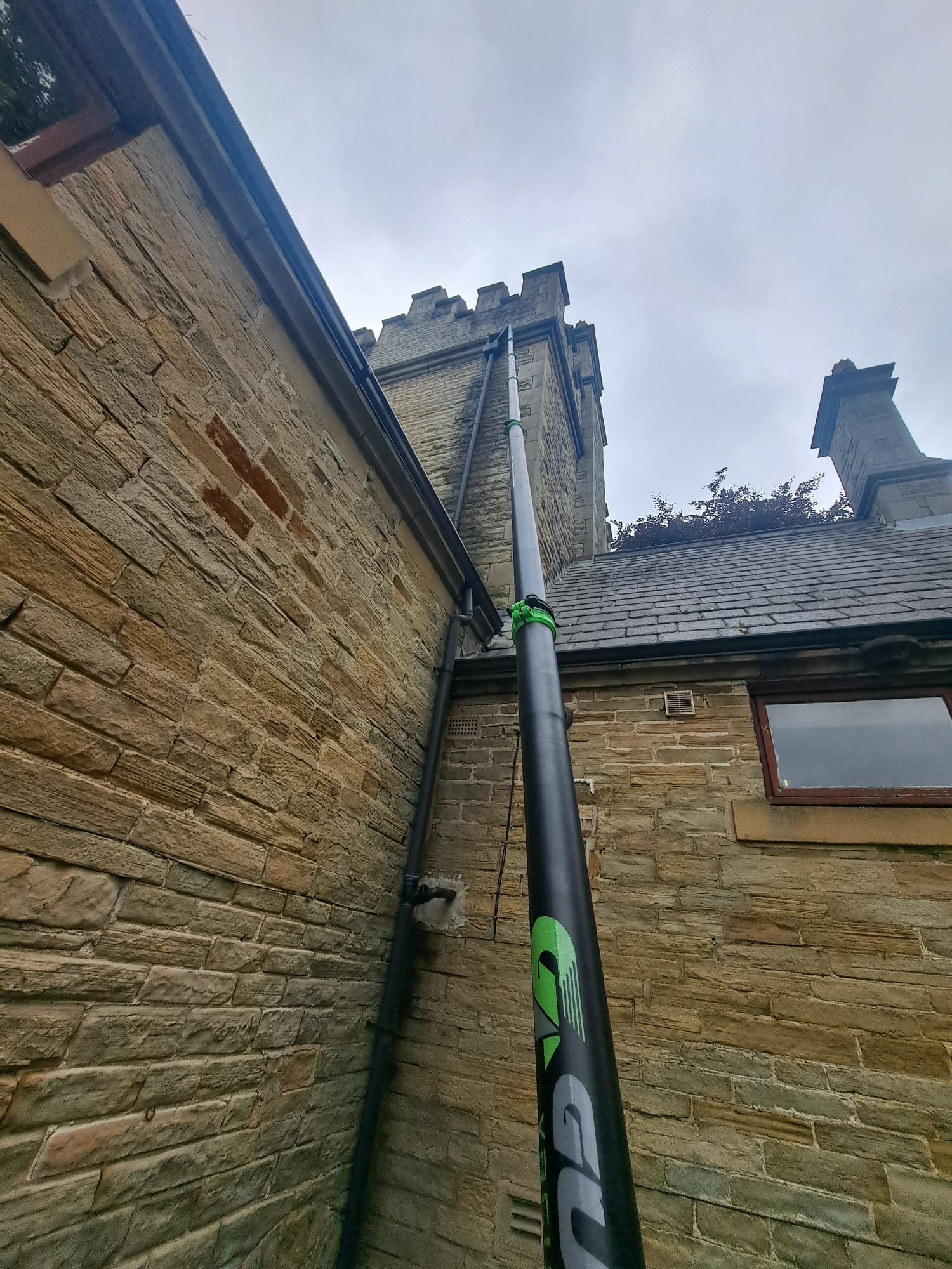 We check for blockages, damage, or signs of overflow. We work from the ground where possible using safe, long-reach equipment.